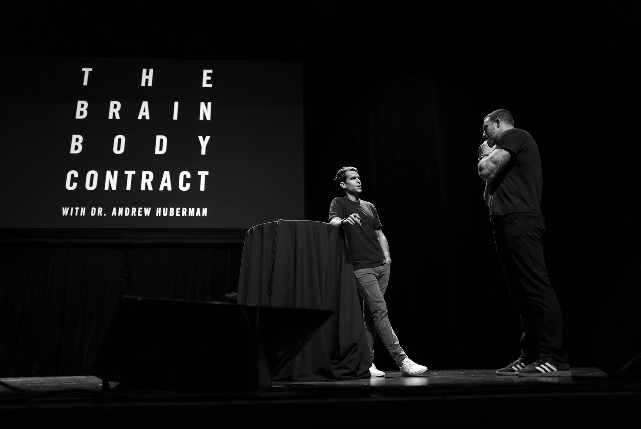 The merchandise logos were designed as bold, simplified marks that scale seamlessly across apparel and event materials while preserving the clarity and credibility of the Huberman Lab brand. Select graphics feature Andrew’s signature sign-off, “thank you for your interest in science,” and all proceeds from the merch were directed toward supporting scientific research.